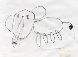 美術教室に来ている7才の子が描いた象。素敵だ。