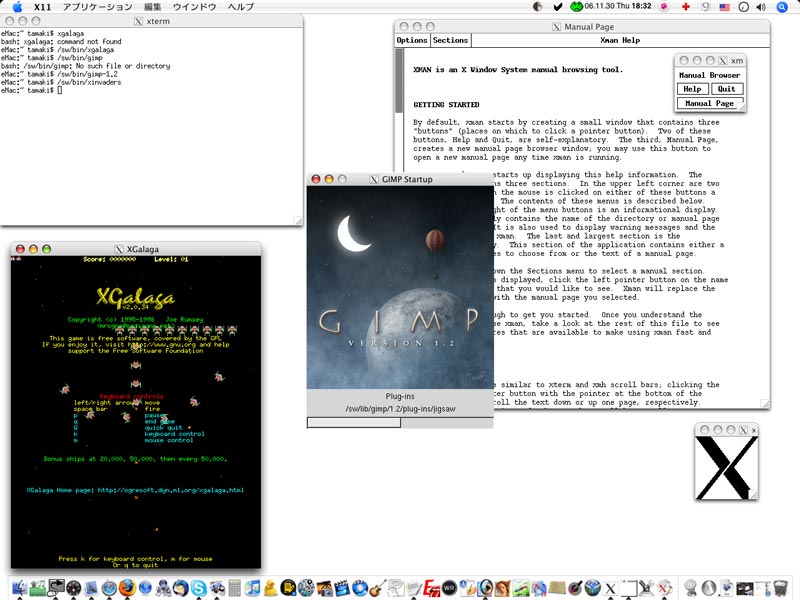 久しぶりにMacOSXでGIMPを使ってみようと思ってTigerにして以来インストールしてなかったことに気が付いた。でX11を起動するのも数年ぶりだったみたいで全然思い出せない。やっと使えるようになったのでまた忘れないようにメモ。とりあえずターミナルも使わず一番シンプルに。
