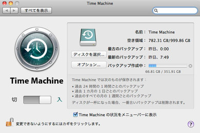 iMac本体(320GB)とムービー用の外付けHD(250GB)とiPhoto Library専用の写真用外付けHD(250GB)のバックアップ中。外付けのひとつはFireWire接続だけどもうひとつがUSB接続なので1週間かかりそう。