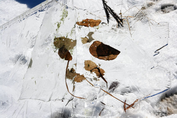 I like to take “leaf and ice” photo.