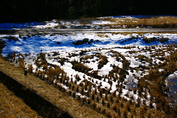 今日の陽気で辺りの雪は一気に溶けた。