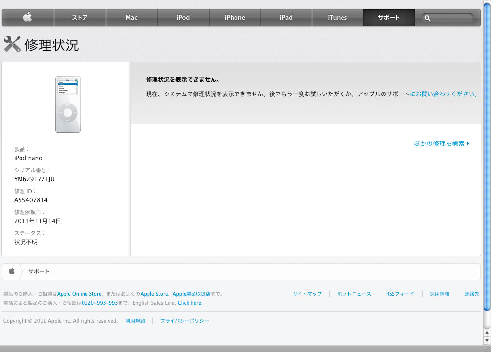 今後はこのページにアクセスすれば修理の進捗状況がわかるらしい。