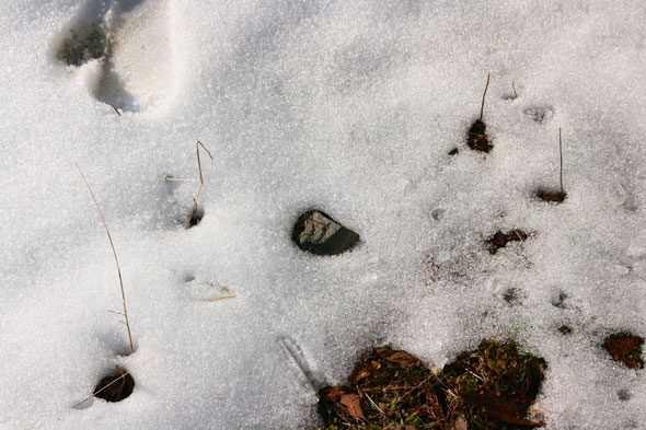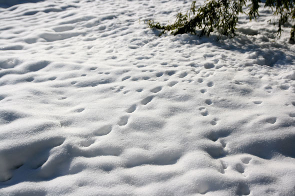 田舎冷蔵庫 庭に雪が残ったまま。僕の住んでいる地域は東北でも温暖で雪が降ってもすぐ溶ける。雪かきが必要なのは年に数回。今年は雪が積もるほど降った後の気温が異常。マイナス10度を超える朝が珍しくないので辺り一面の田んぼの雪も溶けずに残っている。だから更に地域全体で冷えている感じ。冷蔵庫の中にいるような寒さ。 いろいろ歩き回っている。タヌキもいるけどこれは猫だな、きっと。 市の過去の気温データが無かったので隣町のデータを参考に貼っておこう。マイナス15度て。 2013年1月20日 | コメントはまだありません | カテゴリー: 自然