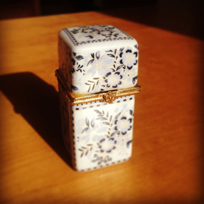王羲之展で買った入れ物(この容器、本来はつまようじ入れらしいが・笑)に小春の骨を少しだけ分けて手元にはそれだけ残す。後の骨を埋めた。