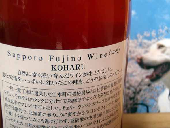 え?どうして?と思いがけないプレゼントにちょっとびっくり。聞くと彼女の友だちが(というのがすごいな)北海道でワイナリーをやっていて、ワインがおいしい。その中にこんな名前のワインがあるからプレゼントしようと思っていた、と言って袋から出してくれたワインのラベルを見ると、さっぽろ藤野ワイナリーのロゼワイン。
