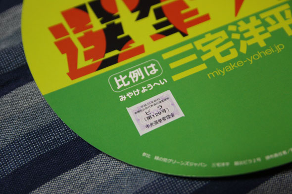 選管に許可を得ている「ビラ」だった。いろいろ大変だ。