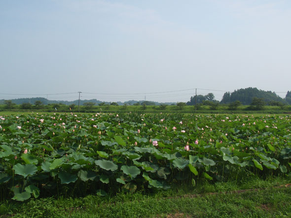 田んぼに囲まれたハス、というちょっと変わった風景。