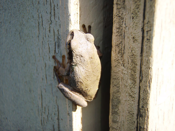 今日のカエル この前のカエルは木の色になってたけど、仕事場のクリーム色のペンキで塗ったコンプレッサー小屋にずっといたらしいカエルくん。 見事にクリーム色。今度、金色の折り紙の上に乗ってもらおうか。みどりのカエルは金色になれるのか? ゆ […] もっと読む » 2013年9月19日 | コメントはまだありません | カテゴリー: 三日坊主日記