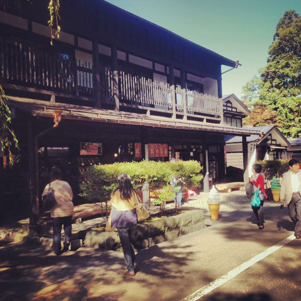カミさんは甘酒。カミさんの友だちはきりたんぽに味噌を付けて焼いたもの。一口いただいたらこれがまた美味しい。