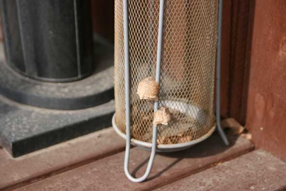 カマキリの卵 いろんな事で春を感じる。 野菜を貯蔵していた部屋の大根に立派な芽が出ていた。 いただいた苔玉も雪焼けして心配したけど冬を乗りきったようだ。 玄関前の来客用の傘入れにふたつも生み付けられたカマキリの卵も春の日差しを喜んでいるだろう。 2014年3月19日 | コメントはまだありません | カテゴリー: 自然