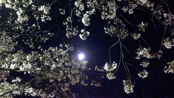 桜と十五夜お月様。 仲間との話し合いを終えてふと見上げた空に。