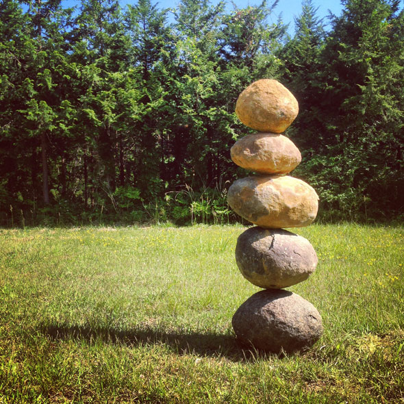 真夏のように暑かった日。1週間くらい前までは3段、そして4日前は4段と、積み上げられる石の段数が増えていって、初めて5段積めた今日、とうとう最新作の彫刻は壊れることなく無事完成した。