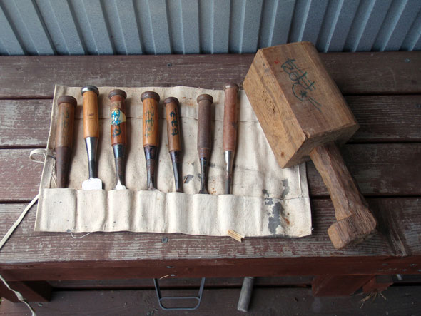 だけどいろいろ試したらこの木が、今回の石の作品の台座にピッタリだったので、ちょっと残念だけど丸ノコで切れ目を入れる。