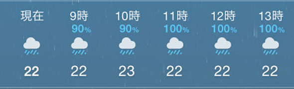 雨・雨・雨 今年の夏は水風呂に入らないとしのげないくらいに熱くて、いや暑くて文句言ってましたが、この天気予報は気持ちが折れる。結局どんな天気でも文句言ってるだけだ。何を見ても美しい初春以外は。がんばろう。 もっと読む » 2014年8月26日 | コメントはまだありません | カテゴリー: 三日坊主日記