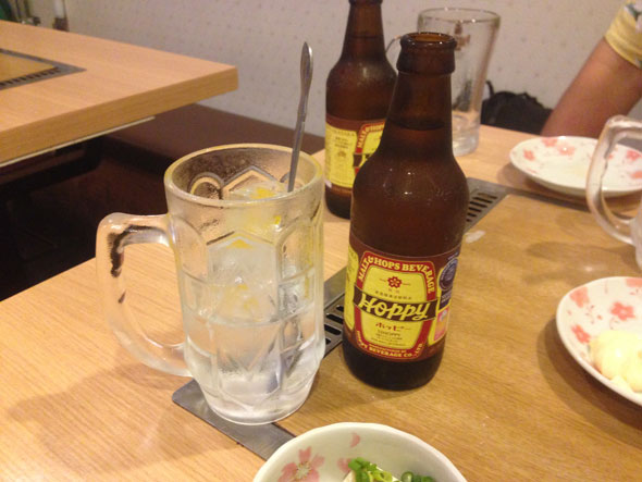 生ビールで乾杯したらホッピー!しかも「赤」。僕のブログにホッピーはよく登場するけど、店で飲んだのは訳も分からず飲んだ大学以来だ。しかも僕がホッピーの投稿をするといつも「ホッピー!ハッピー!」と突っ込んでくれるハラくんと一緒だ。