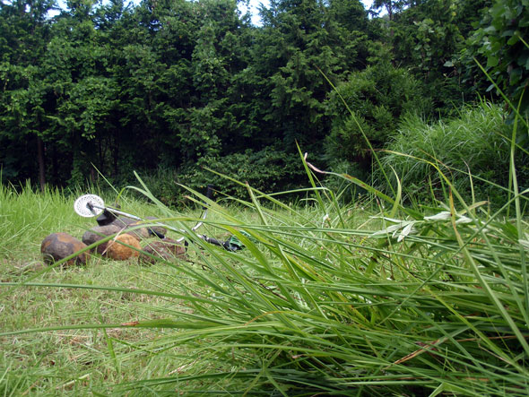 草刈りをやってもやっても追いつかない。制作も進めないといけない。草刈りをやっていると進まない制作にイライラし、制作をしていると雑草に呑み込まれそうな仕事場にイライラする。そこで今日は、石の彫刻の最後の磨きと草刈りを交互にやってみた。