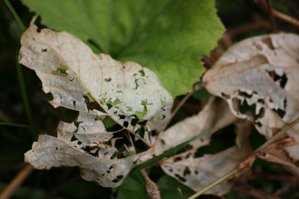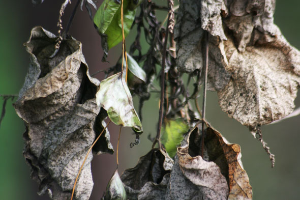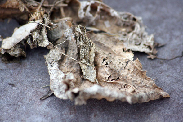 仕事場が葛に呑み込まれないように太い大本を必死に刈ったツルと葉が枯れていた。朽ちゆく葉の枯れている風情が興味深く、久しぶりに夢中になってシャッターを押しまくった。普通の人にはきっと何にも面白くありません。退屈。閲覧注意。本当にただの枯れ葉ですが撮った写真の中から(これでも)ホンの少しだけ掲載。