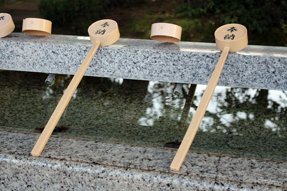 両手の平と、手の平にとった水で口をすすぎます。