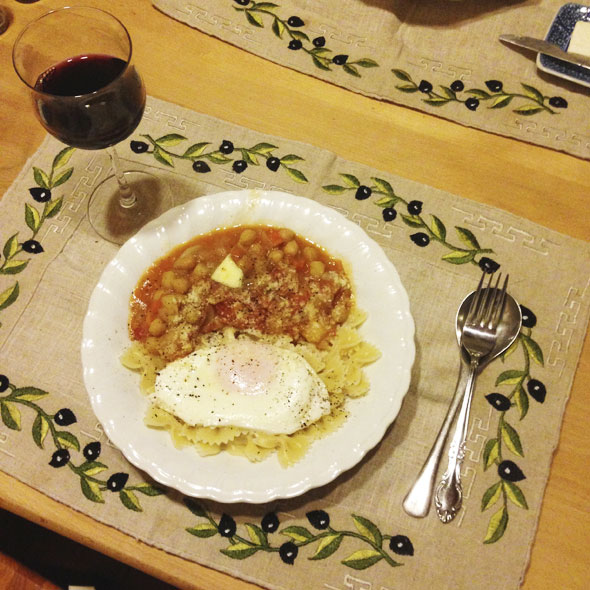 ラグー 昨日、大きなダッチオーブンいっぱいにラグーを作ったのでしばらく食べることになる。飽きないようにアレンジしたり少しずつ変身させて。 今宵はファルファッレにかけていただきます。 半熟の目玉焼きを添えて。ごちそうさまでした。 もっと読む » 2014年12月3日 | コメントはまだありません | カテゴリー: おいしい