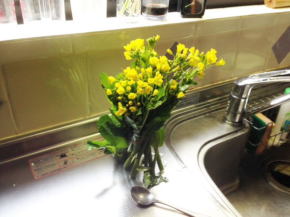 こんなにきれいに咲いているので花器に放り込みたいところだけど、早速茹でていただきました。
