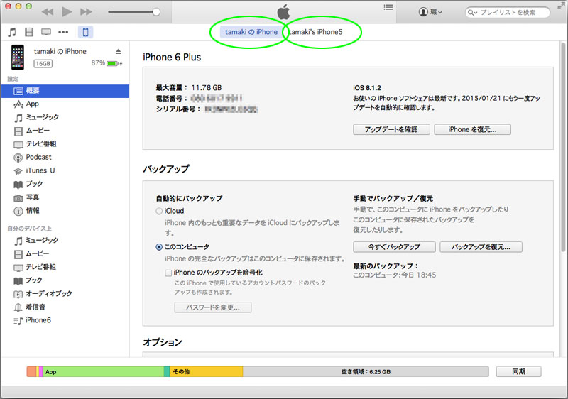 iTunesは2台のiPhoneを認識して使い分けられることがわかったので、さらに便利。