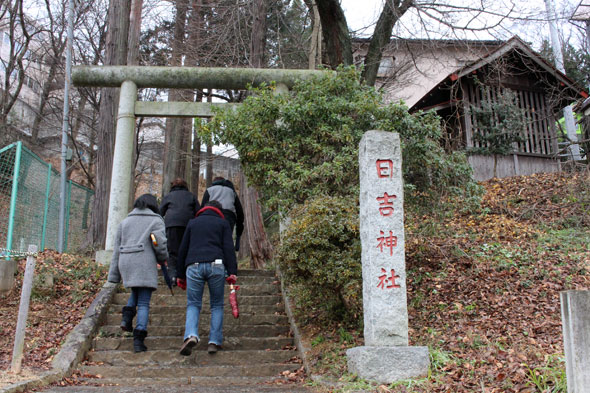 近くの神社へ初詣に行こうと思ったら雪が降ってきた。庭木がうっすらと白くなるほど。