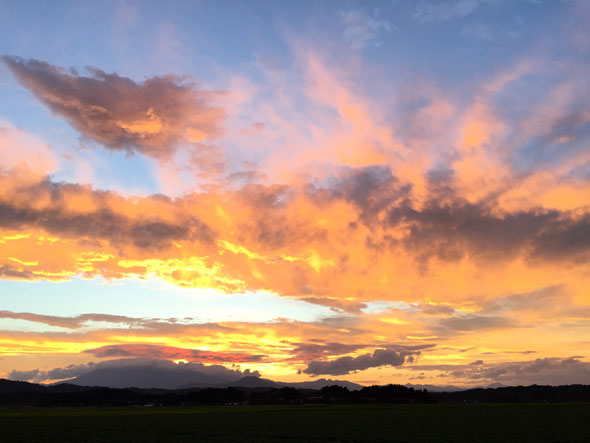 もっと読む »朝、家を出る時の景色。 仕事場。飛ぶように雲が流れていく。 大粒の雨が降ってきた。雨粒でかい。雨の中での仕事。大降りになったり止んだり。 雨は降ってるけど、Tシャツ1枚でも暑い。 横一文字の青空。 午後4時に仕事を上がっ […]