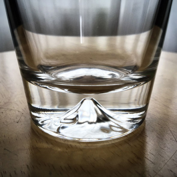 底が富士山に抜けてるグラス、ずっと欲しかった。ウィスキーのおまけで手に入れた!これからしばらくハイボールになるな。