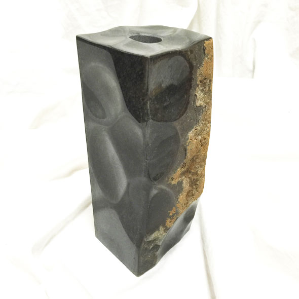 凹凹が多くて磨くのに苦労したけどやっと今日磨き終わりました。EKUBO。彫刻みたいな石の一輪挿し。