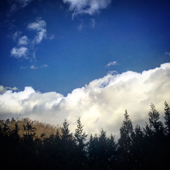 僕の仕事場は、冬は山の影で午後は太陽の光が届かない。午後3時に少し休憩して、この空を撮った後、一気に冷える冷える。