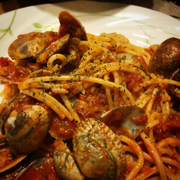 久しぶりにボンゴレ・ヴェラーチェ。本当はミニトマトで作るのだけど、時期じゃなくて高かったので初めてトマト缶で作ってみる。