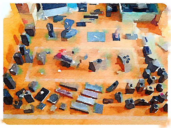 午前中、たくさんある中から初日に持って行く作品と、初日の展示の計画をいろんなパターンを試して見る。でも今回が初めてなので、具体的にわからないことも多いので、雲をつかむようだけど一度やっておくと、とりあえず気持ちは少しだけ落ち着く。というかこれはいつもやっている事だけど。