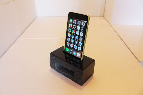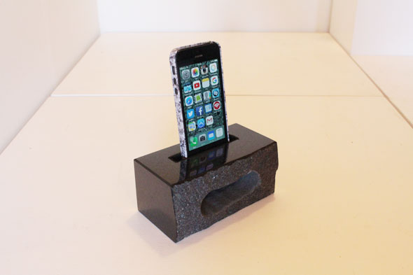 御影石のiPhoneスピーカースタンド作った。