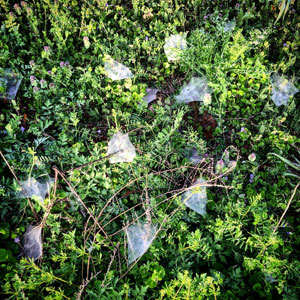 もっと読む »起きてすぐに玄関のドアを開けてみた。朝もや。 視線を下に降ろすと、朝露で濡れた蜘蛛の巣の数が尋常じゃ無い。 濡れた蜘蛛の巣の展示場みたい。 庭木にも。 朝露の降りている日は、家でも仕事場でも良く見る光景だけど、今朝はその […]
