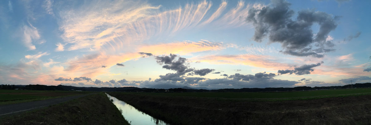 夕方、雲があんまり美しくて、全天が美しくて、どこを切り取っても美しくて、