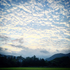 夕方、きれいなうろこ雲が広がった。 そうだ、朝は雨だったんだ。 また、台風が来るらしい。