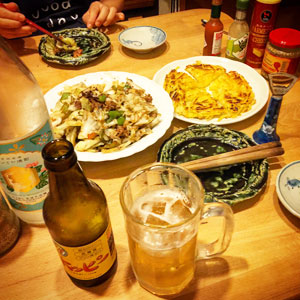 今宵の居酒屋我家。仕事上がって風呂上がりに、回鍋肉と細切りジャガイモのカリカリ焼き作った。昼過ぎまではバテバテの灼熱。3時を過ぎると一気に冷えてくるのが東北。