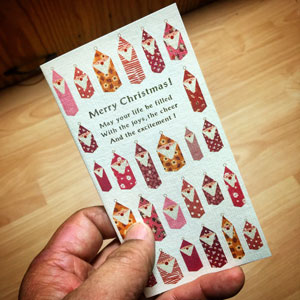 朝焼け。 家の前の景色。 庭の花は凍ってる朝。 例年、11月には作っていた年賀状にも使う、宣伝用の石彫ポストカード。今年は11月が個展のためにポストカードの原稿作って入稿したのが12月上旬。だけど、今日25日まで投函の年 […]