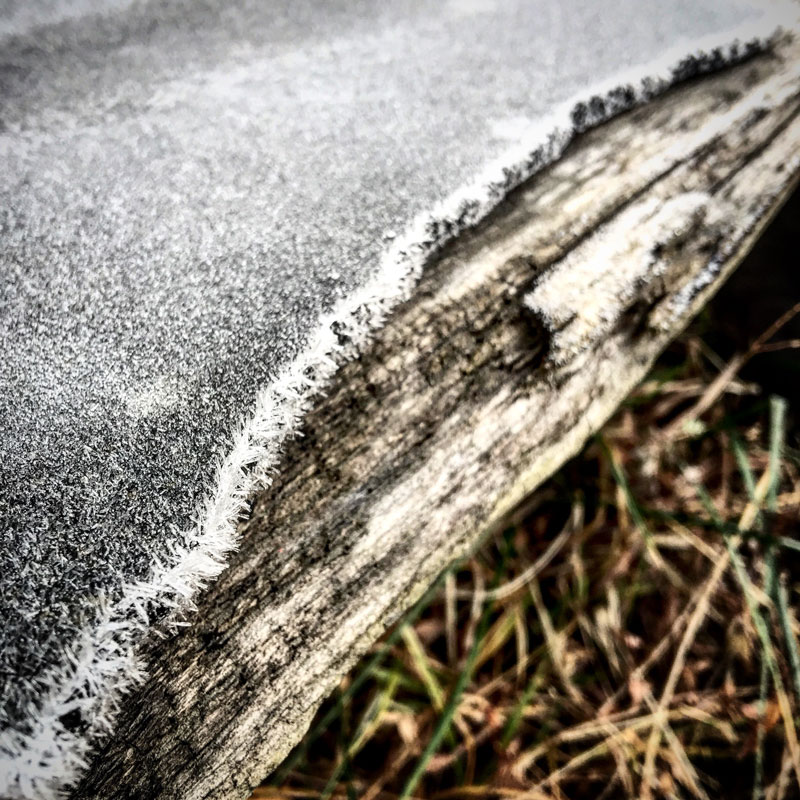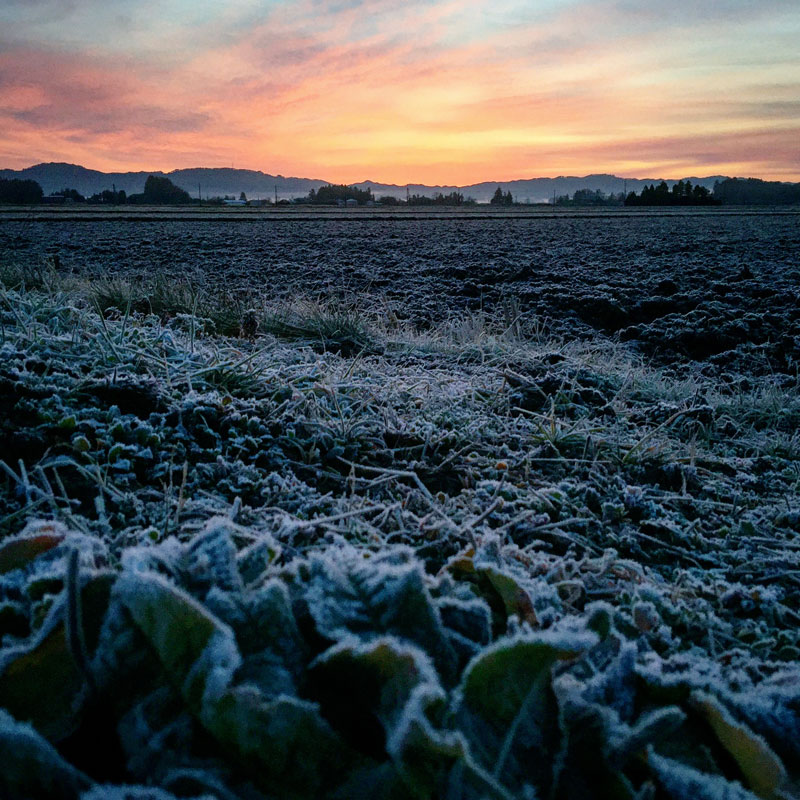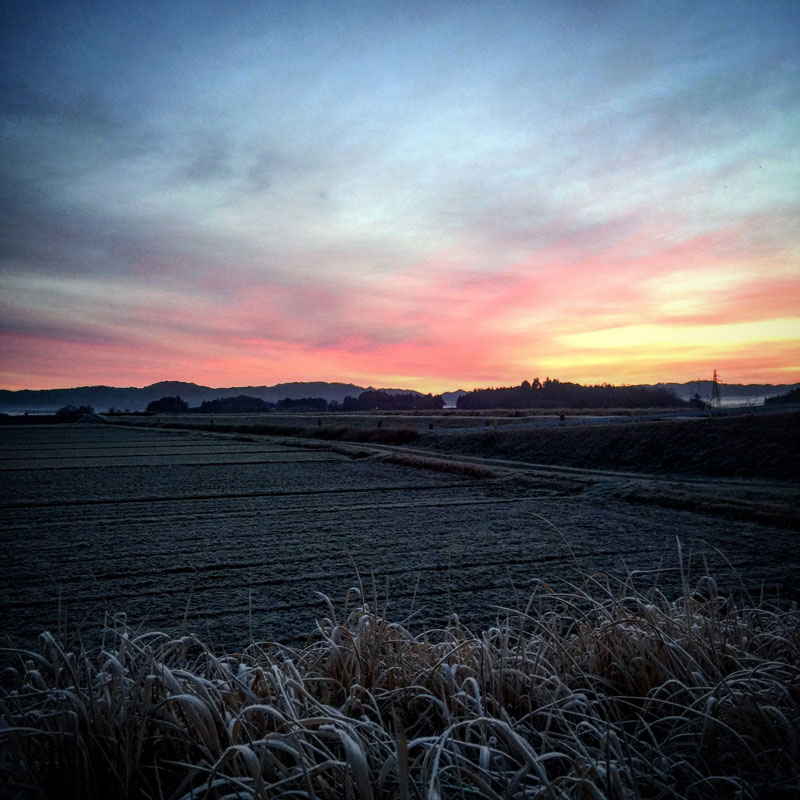 ここに来るまでの間、(最近、車替えたばかりで慣れて無くて)間違ってウインドウォッシャー液出しちゃって、フロントグラス一瞬で凍りついて、前見えなくなって焦った。辺り一面霜ってる。水路の水も凍ってる朝。