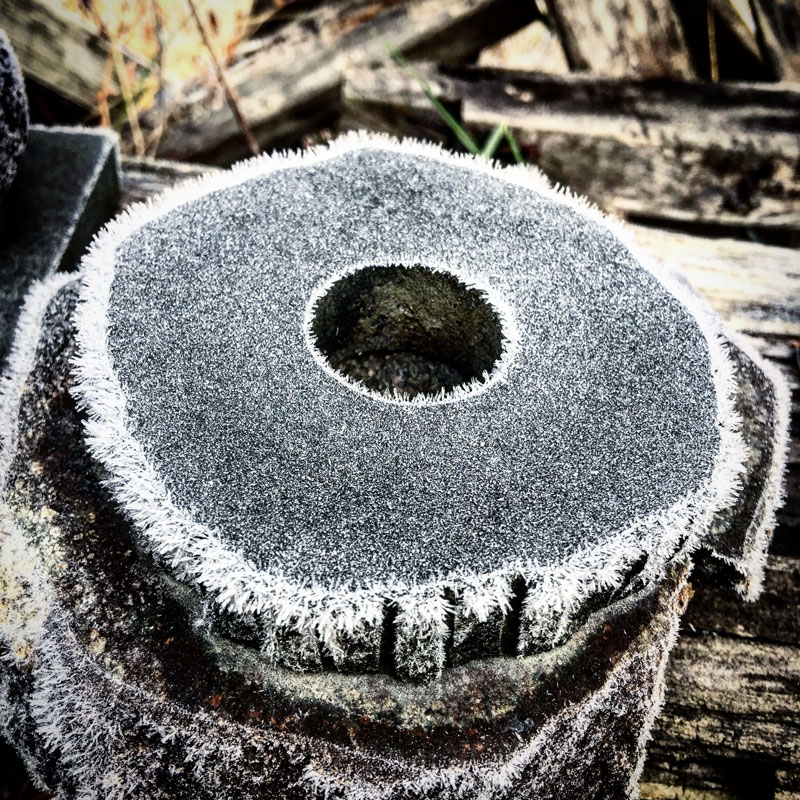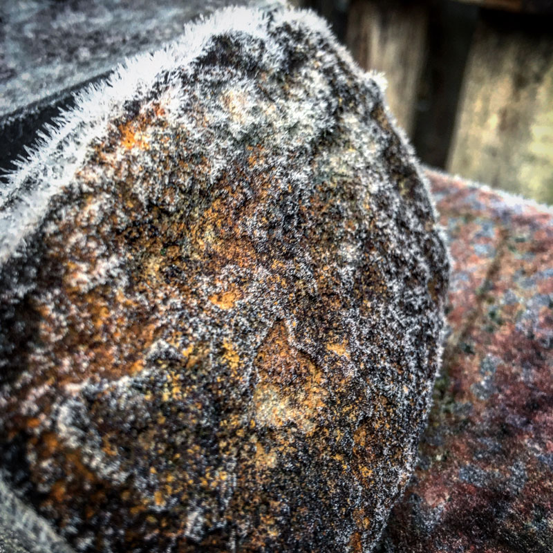 凍りついた仕事場。石にも霜が降りてる。寒いよ〜!