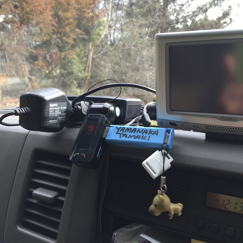 石彫号のFMラジオでiPhoneの音楽を聞いたりハンズフリーで電話するために買ったトランスミッター。今度のはbluetooth接続で無線!しかもUSBが2本刺せて充電出来る。しかもMP3で曲を入れておけばUSBからの再生も可能。いい買い物だった。(→BESTEK FMトランスミッター)
