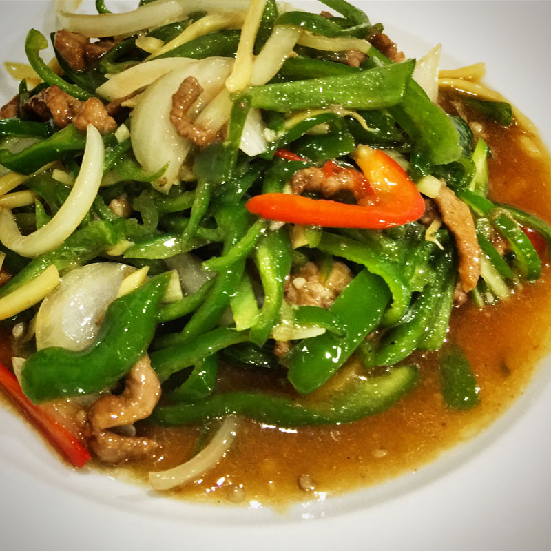 青椒牛肉絲。熱々!ピーマンの歯応えが美味しい!