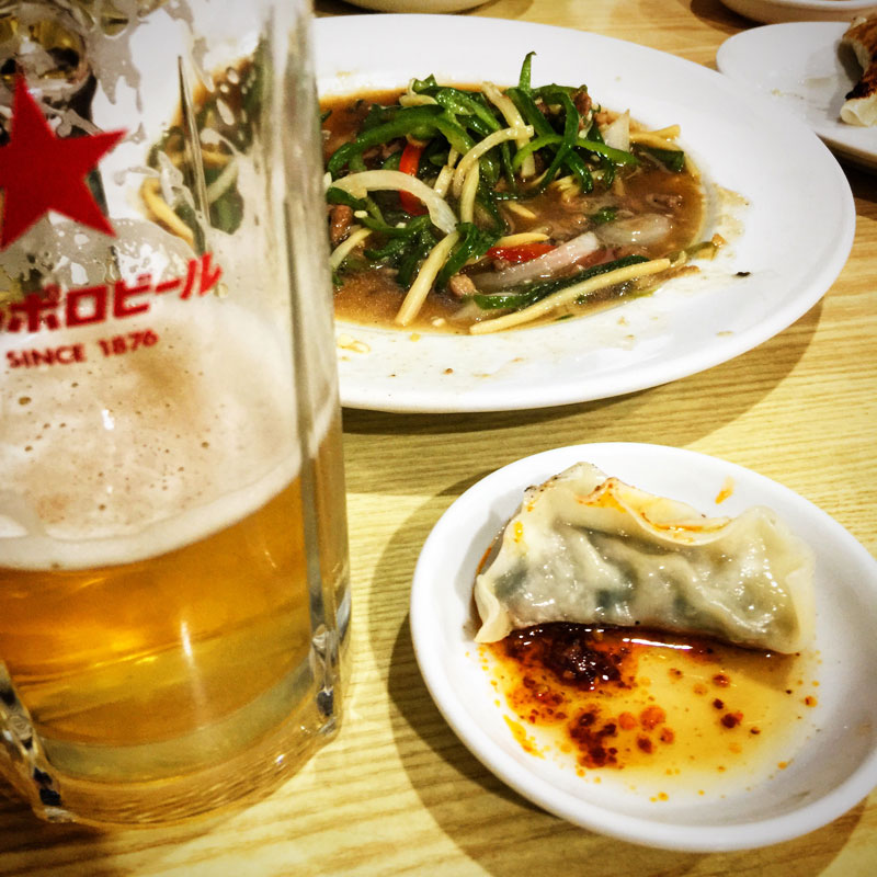 餃子に生ビール、言うこと無いス。久しぶりの贅沢也。