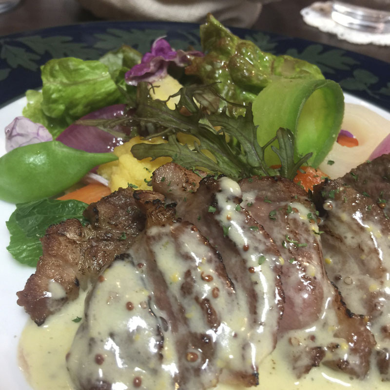今週のランチは豚肩ロースのソテー、マスタードソース仕立て。