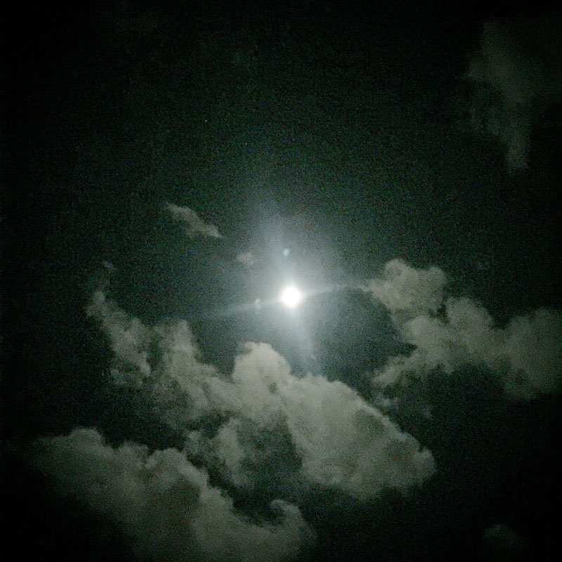家に帰って見上げた空。半分しか輝いてないのに明るい月夜だ。