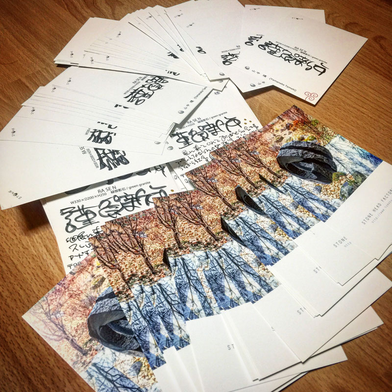 例年、11月には作っていた年賀状にも使う、宣伝用の石彫ポストカード。今年は11月が個展のためにポストカードの原稿作って入稿したのが12月上旬。だけど、今日25日まで投函の年賀状、間に合わせたぞー。全部一言書いて、干支の切手貼ったぞー(シール切手じゃないとこれが何気に大変)やり切った感、ハンパない。