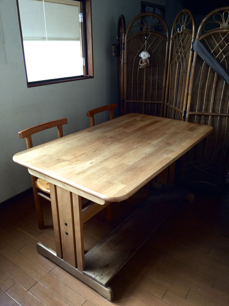 昨晩、久しぶりに食卓に蜜蝋塗った。