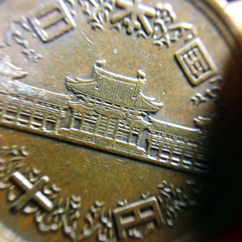 10円硬貨の表。平等院鳳凰堂。それにしてもよくこんな小さなレリーフを彫ったものだ。