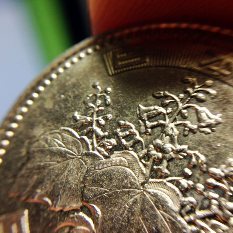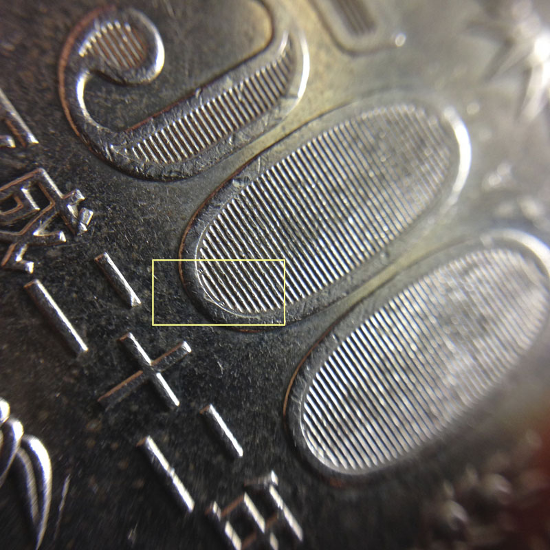 それだけじゃない。マクロレンズで撮影しなければ見ることが出来ない、500円硬貨の各所に(偽造防止のため?)彫られた “NIPPON”の文字もこのクリップレンズのマクロレンズで撮れました。