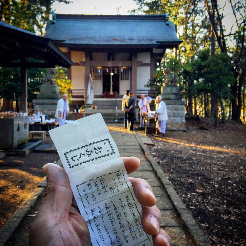 はじめてこの神社でおみくじをやっているところに遭遇したのでひいてみる。第一番「大吉」だった。ただしおみくじいわく